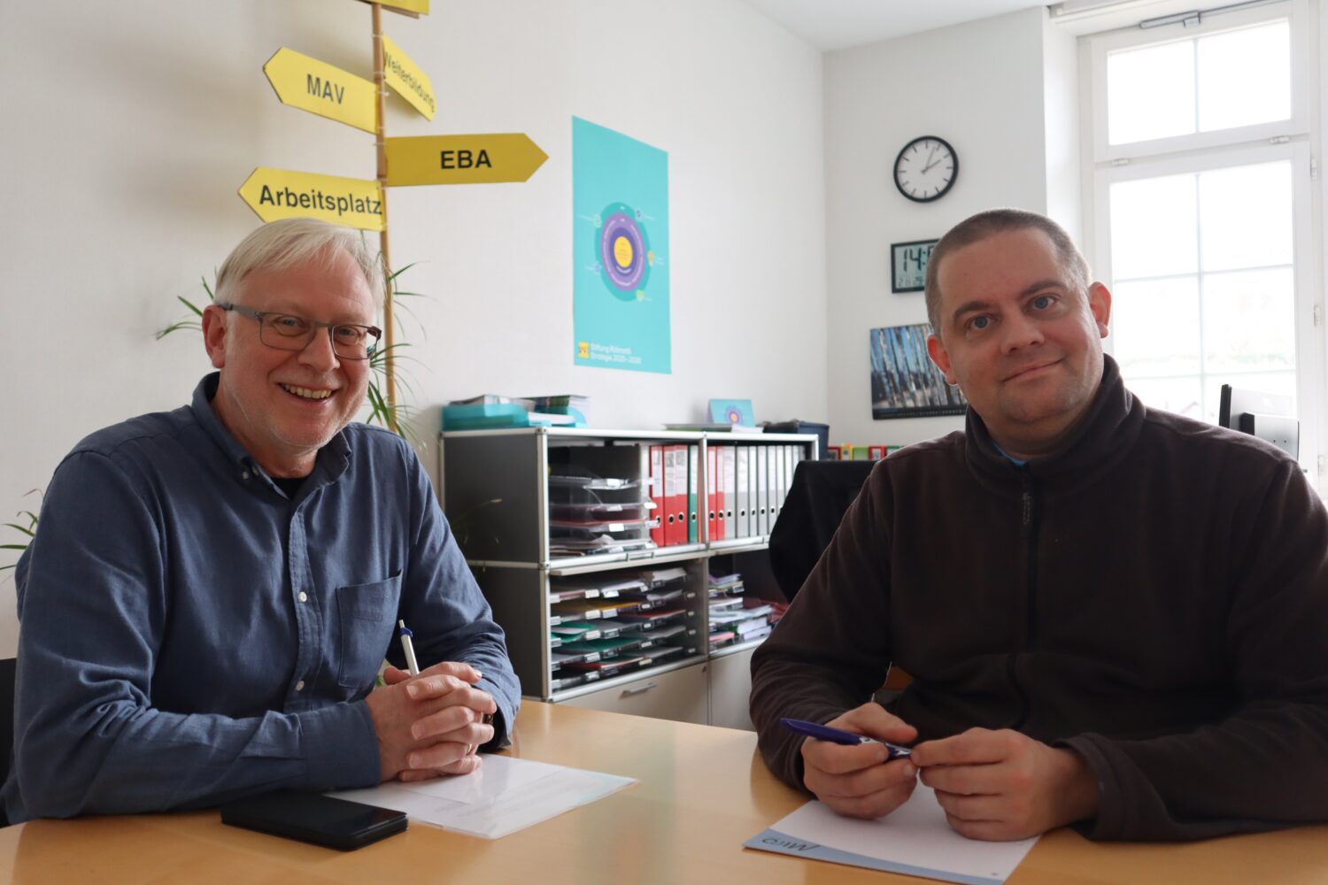 Seit über 12 Jahren leitete Thomas Achermann bei der Stiftung Rütimattli die Berufliche Integration. Als Job-Coach begleitete er zahlreiche Jugendliche in ihrer beruflichen Entwicklung, darunter auch René Rohrer. Nun stehen beide im März an bedeutenden Wegkreuzungen: René mit dem Schritt in eine Festanstellung im ersten Arbeitsmarkt und Thomas mit dem Eintritt in die Pensionierung.